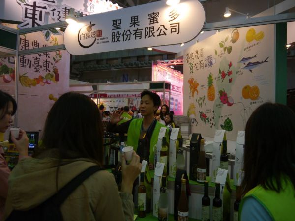 2015-10-10 台東縣長黃健庭大力給讚 台東縣長黃健庭大力給讚:聖果蜜多股份有限公司所生產之各項產品,均嚴選新鮮高品質的原料,並以獨特技術釀造,絕不添加任何危害人體的化學原料,向來深受消費者好評與喜愛。在台東農特產品展場上,縣長黃健庭特別蒞臨品嚐,並給予極大讚賞! 回上一頁