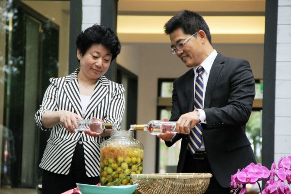 2013-04-16 台東縣長&無鍚參訪團~梅酒DIY 無鍚市委書記黃莉(無鍚參訪團)蒞臨台東,縣長黃健庭取用松林梅有機自然生態園之有機青梅,與聖果蜜多股份有限公司所釀製之38度小米酒,當場兩人DIY展示調酒。令無鍚參訪團印象深刻!極度讚賞本公司之釀酒技術與優質口感。 回上一頁